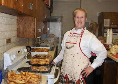 Elyssa's husband Ross helps out, too. Ross, you make that apron look good!