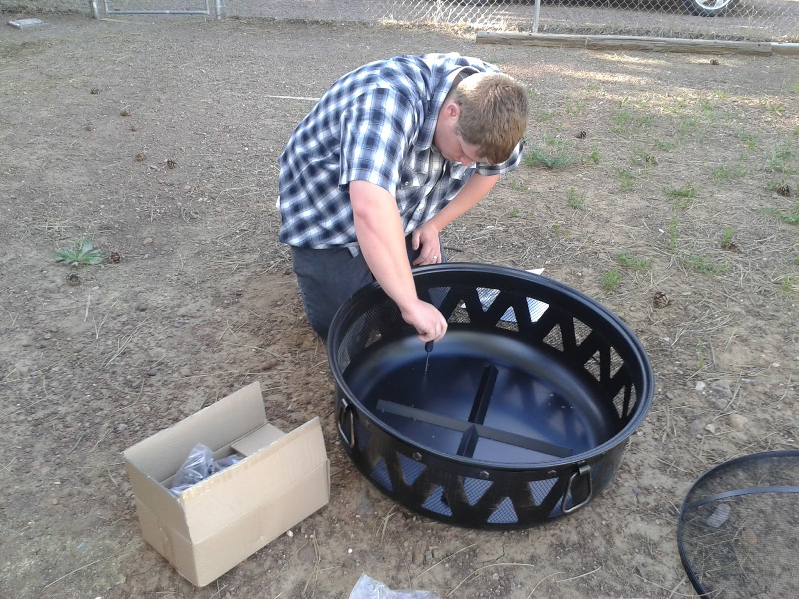 Mark oversees Jacob putting together my new fire pit.
